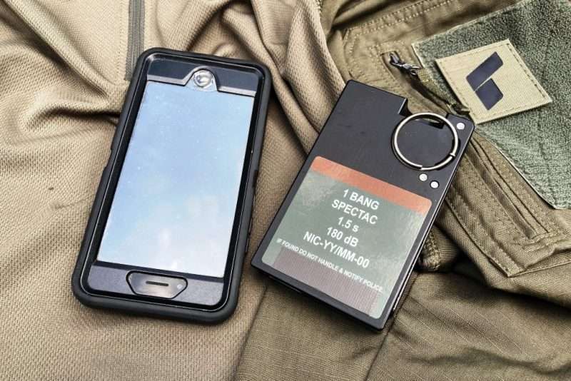 Rheinmetall proudly introduces Spectac, its pioneering non-lethal effector. This rectangular stun grenade is specifically engineered for use by military and law enforcement elite operatives. The most notable aspect of the user-friendly Spectac is its smartphone-inspired design, featuring the locking ring and rocker arm ignitor integrated into a rectangular casing comparable in size to a mobile device.