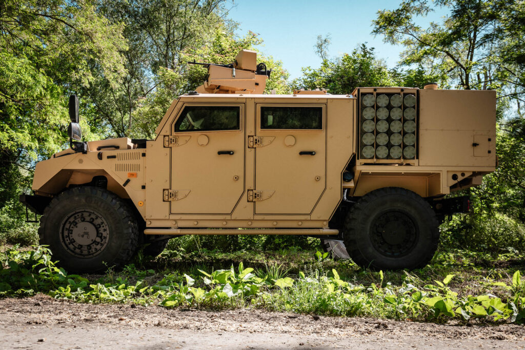 At Eurosatory 2022, the Sherpa A2M was showcased with a Hornet Lite RCWS equipped with a 7.62mm machine gun for the vehicle’s self-defense.