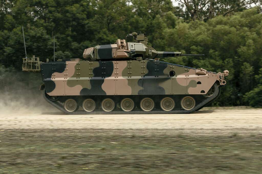 ROK military personnel are anticipated to witness the capabilities of the Iron Vision system and the composite rubber track utilized on the Redback.