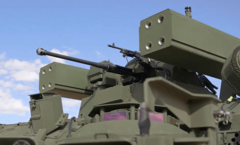 The ExMEP on the AMPV C-UAS prototype is outfitted with the Moog Reconfigurable Integrated-weapons Platform (RIwP®) turret.
