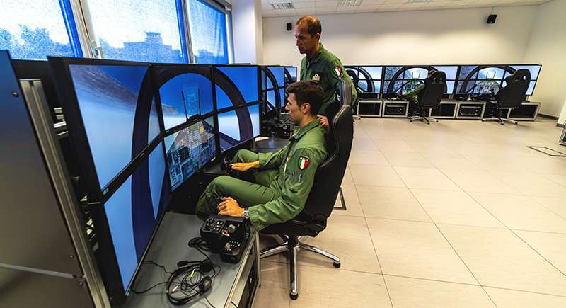 Recently, new steps were taken towards a further technological leap forward with the introduction into service of the new Aermacchi M-345 training aircraft for the Italian Air Force. This saw the introduction of eXtended Reality with visors for immersive and mixed virtual reality and tactile gloves. This increased the effectiveness of training while also opening the way to the development of new technologies that can lead to important engineering spin-offs and further technological developments. The ‘virtual instructor’ is integrated with equipment that accurately simulates the aircraft’s aeromechanical, performance and avionic characteristics. These are all set in an external virtual, meteorological and tactical environment which provides the pilot with all the stimuli (visual, audio) experienced during actual flight.