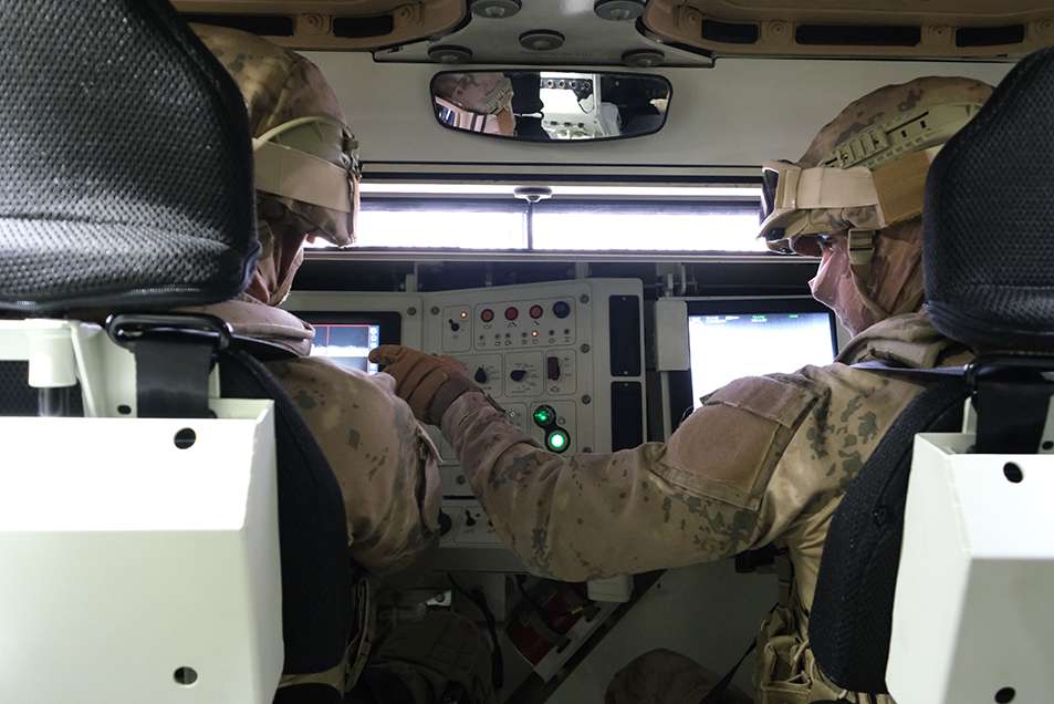 This next-gen vehicle introduces advanced protection systems that provide unmatched resistance to mines, IEDs, kinetic energy threats, and artillery projectiles. Mine blast attenuation seating and positioning the driver and commander above the second axle, behind the power pack compartment, enhance crew safety against high-level threats from all directions. This design strategy offers unique kinetic energy ballistic protection, especially in the vehicle’s frontal arc. The hydro-pneumatic suspension system, with adjustable ride height control, can enhance mine protection by exceeding a ground clearance of 60 cm when needed.