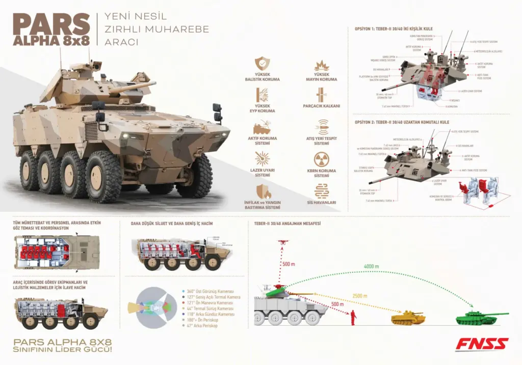 “The PARS ALPHA 8×8 is a reflection of FNSS’s commitment to engineering a future where ground forces can attain a technological advantage on the battlefield, both now and in the future,” stated Nail Kurt, CEO of FNSS. He added, “The PARS ALPHA 8×8 signifies a breakthrough in armoured vehicle technology. Our dedication to innovation and insights into the modern combat landscape have resulted in a platform that delivers unparalleled tactical adaptability and combat efficiency. It is crafted to empower military forces globally with superior armoured combat capabilities.”