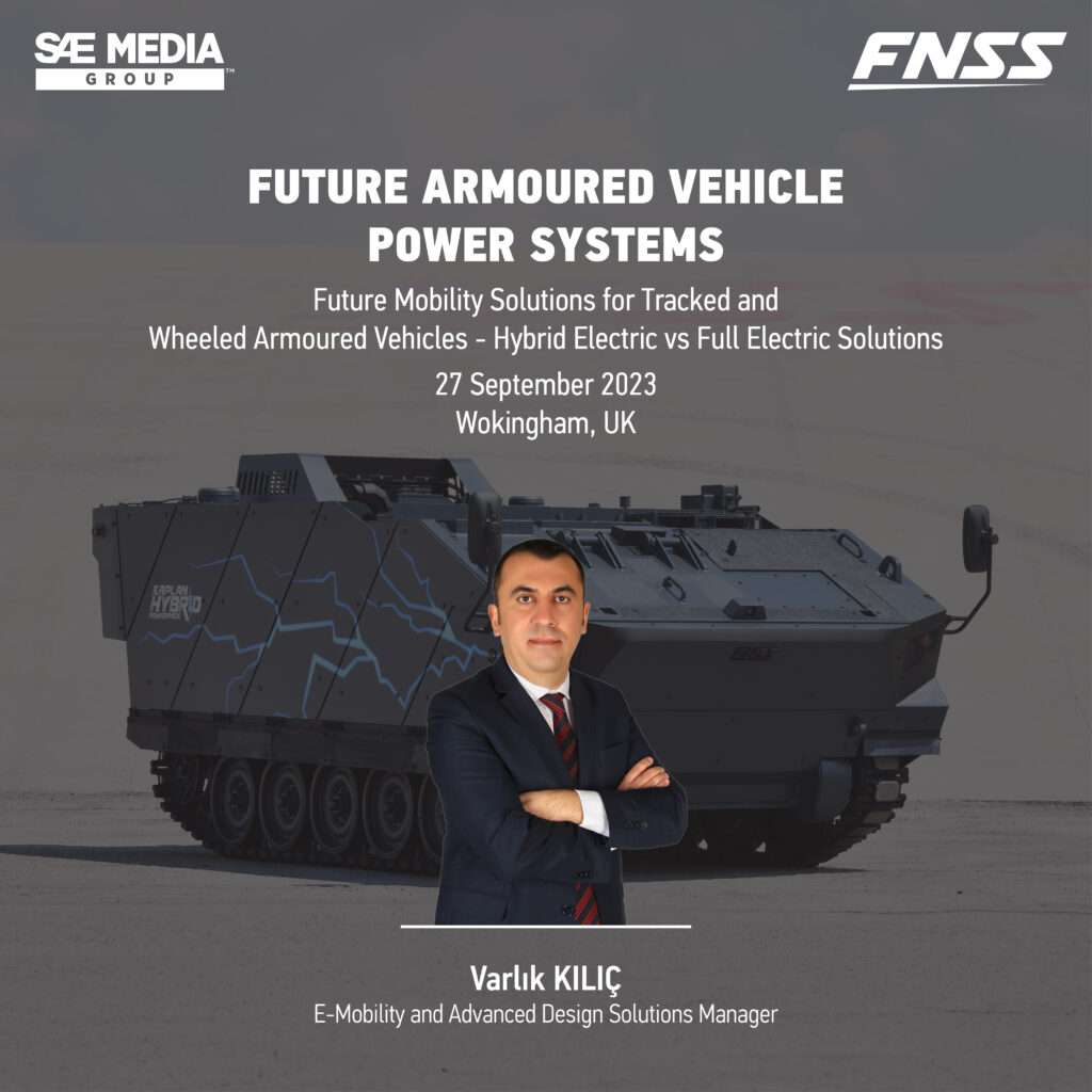 During this conference, FNSS’s E-Mobility & Advanced Design Solutions Manager, Varlık KILIÇ, will present on the topic “Future Mobility Solutions for Tracked and Wheeled Armoured Vehicles – Hybrid Electric vs Full Electric Solutions” on September 27 at 11:00.