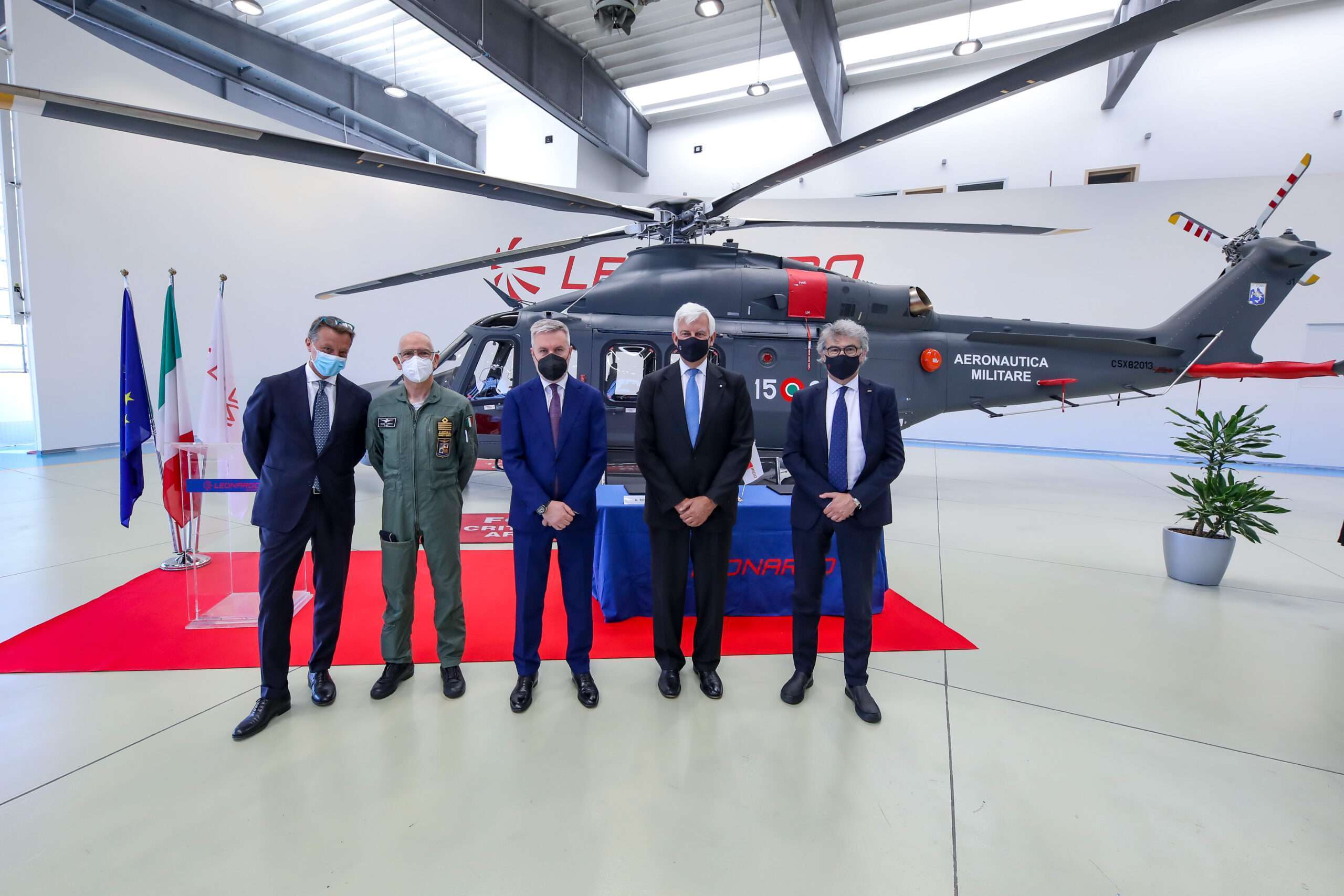 Today, the Italian Defence Minister Lorenzo Guerini and the Chief of Staff of the Italian Air Force, Gen. Alberto Rosso, participated in the induction ceremony of an HH-139B helicopter at Leonardo’s rotorcraft facility in Vergiate, Italy. Key figures in attendance included Leonardo’s CEO Alessandro Profumo, General Manager Lucio Valerio Cioffi, and MD of Leonardo Helicopters, Gian Piero Cutillo. Throughout their visit, the dignitaries were presented with the Company’s industrial capabilities, cutting-edge products, and state-of-the-art technologies, which showcase Leonardo’s dominance in vertical flight and maintain strategic technological competencies within the country.