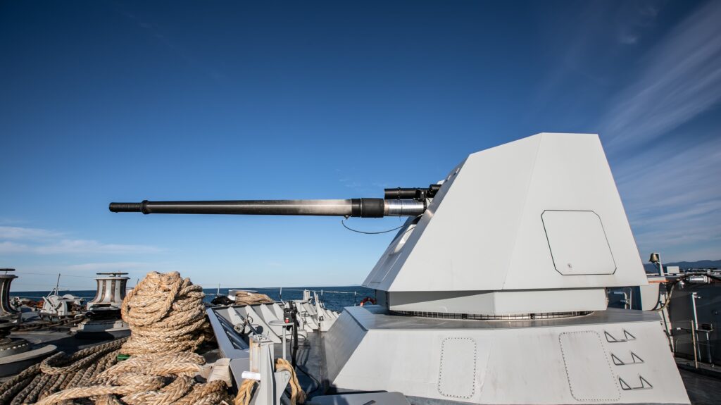 The OTO 127/64 LW Vulcano naval artillery is a technologically advanced and thoroughly digitalized system designed to deliver continuous assistance to operators and the onboard Combat Management System for calculating firing solutions during mission preparation. Distinctive in the global market, Leonardo’s 127/64 LW Vulcano artillery can utilize both standard 127mm ammunition and the two variants of the company’s Vulcano 127mm shells: Guided Long Range (GLR) and Ballistic Extended Range (BER). The gun enhances a naval unit’s defensive prowess up to 85 km while ensuring pinpoint accuracy.